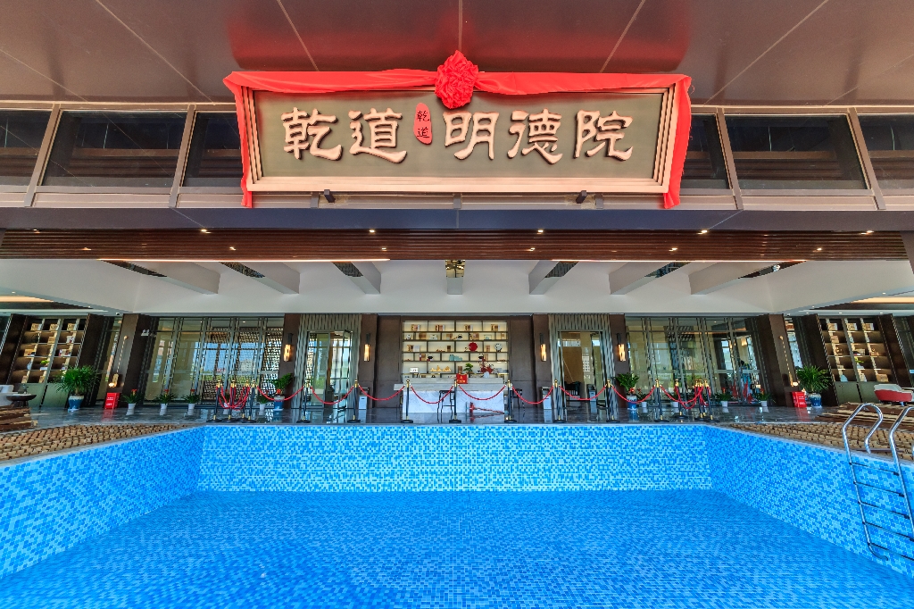 大学之道,在明明德。媒体行第二站,是与东院一路之隔的乾道·明德院,乾道精心打造的12年教育成长大盘。项目自建5000平幼儿园,对面就是9年制明德学校,占地108亩,建成后是邵阳占地面积最大的学校,真正的名校零距离、家门对校门。在整体建筑和园林规划风格上,明德院定位为邵阳首个宋式美学院子。在新中式风格之上,打造一种更讲究意境和风雅、更讲究极简之下呈现出来的精致院落美学。令人惊喜的是,营销中心以及二层打造的室内豪华私家泳池,将永久性保留,成为业主专属的会所,后期交付后就是小区的配套。