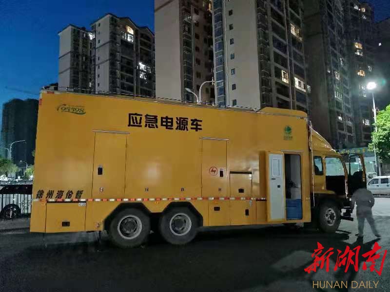 18时,一支由7名队员、1辆500千瓦应急电源车、1辆后勤保障车组成的电力保障队伍迅速集结,整装待发。