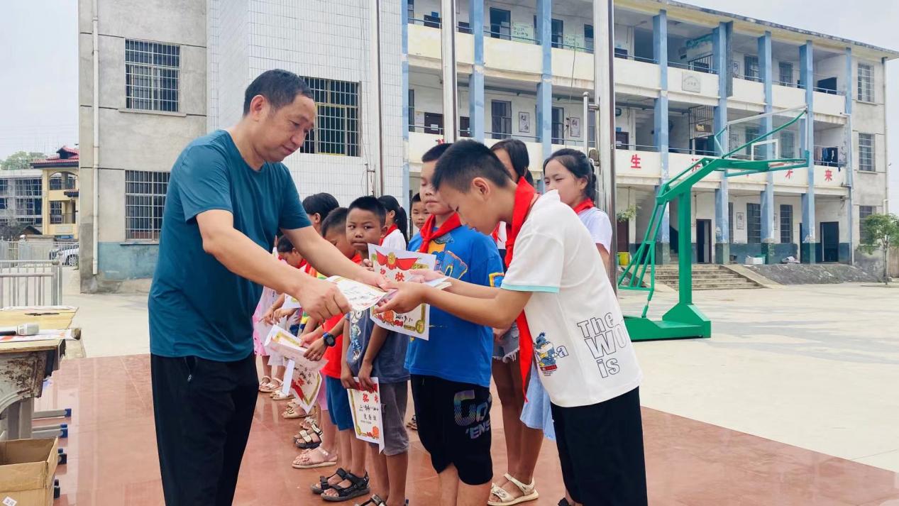 最后,学校为上学期的“优秀班干部”“三好学生”“优秀少先队员”颁奖。同学们脸上绽开了灿烂的笑容。