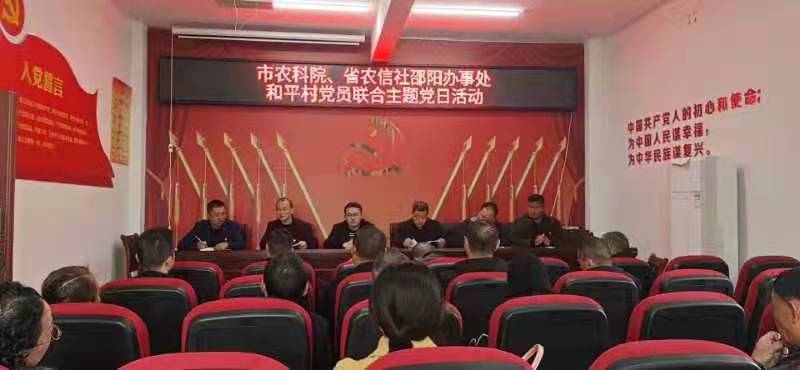 市农科院、省农信社邵阳办事处和平村联合组织开展主题党日活动,学习十九届六中全会精神。