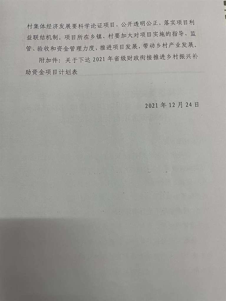 大祥区委实施乡村振兴战略领导小组 关于下达2021年省级财政衔接推进乡村振兴补助资金项目计划表的批复