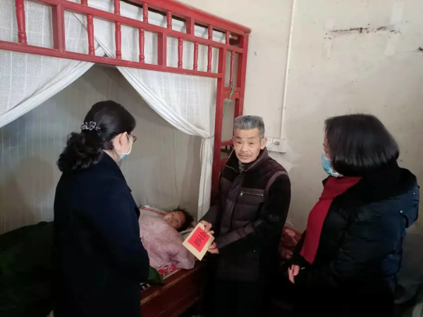 慰问组一行来到五十亭村,对该村13组的妇女黄东娥和2组的妇女邓玉华开展慰问,黄冬娥体弱多病,身患残疾,而家庭收入又低,条件困难;邓玉华瘫痪在床,身患淋巴癌晚期,其丈夫也患有糖尿病和高血压,儿子离异常年在外打工,两个孙子和老两口一起居住,生活举步维艰。慰问组与她们亲切交流,详细了解家庭成员的生活、身体情况,询问她们的实际困难,并送上慰问金。同时叮嘱当地街道、村干部要继续做好帮扶工作,让困难群众真切感受到党和政府的关怀和温暖。