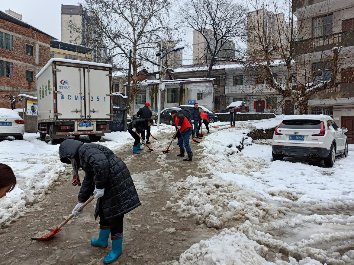 ▲学院路街道:干部群众齐上阵 共铲冰雪护平安