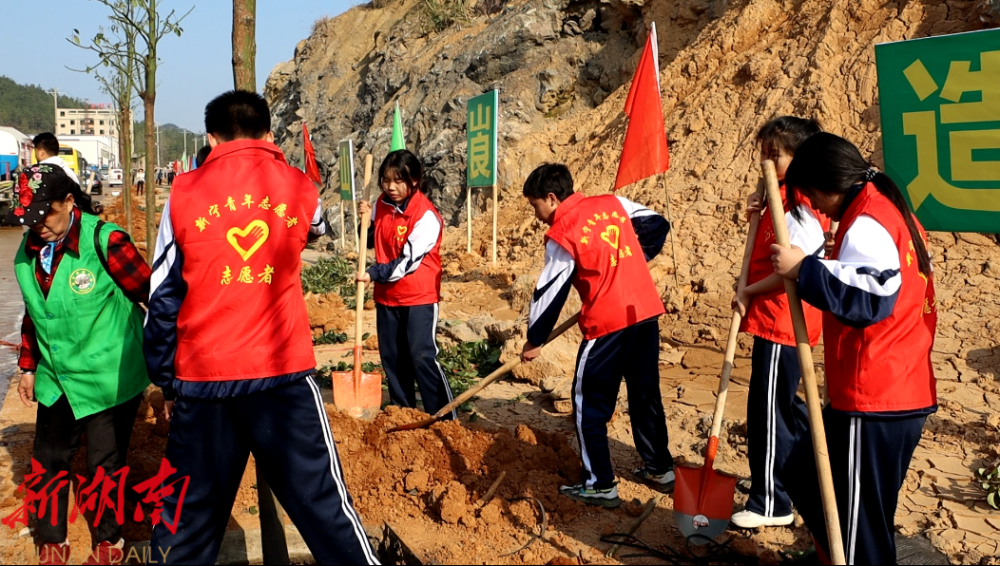 作为崀山世界自然遗产所在地,新宁县十分重视森林生态安全,将开展义务植树和造林绿化上升到“旅游立县、生态引领、产业富民、文化兴盛”发展战略和努力打造世界优秀旅游目的地高度,大力推进林业生态建设,在造林绿化工作上,新宁县委、县政府推行联村建绿机制,由全部驻村单位和部门开展大规模国土绿化行动,促进乡村振兴。