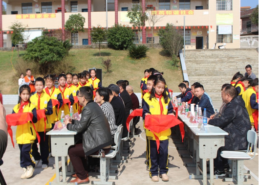 上午十点半,捐赠仪式正式举行,滩头镇三塘小学全体学生整齐有序的在操场列队,由少先队代表给所有莅临的领导嘉宾系上鲜艳的红领巾。滩头镇党委委员肖志华主席提到捐资助学是一件功在当代,立在千秋的伟大事业。爱心捐赠人士周瑞先生表示,为了此次活动,公司所有员工积极响应,人人参与,表现出了极高的热情,只为每一个同学的成长道路上少一分坎坷,让同学们的生活多一些阳光与微笑,让他们感受到人间的大爱和社会家庭的温暖。