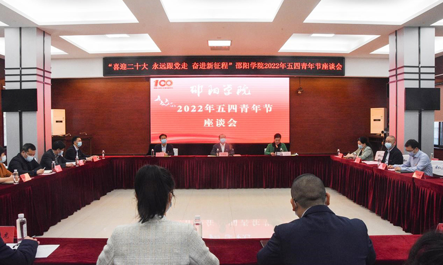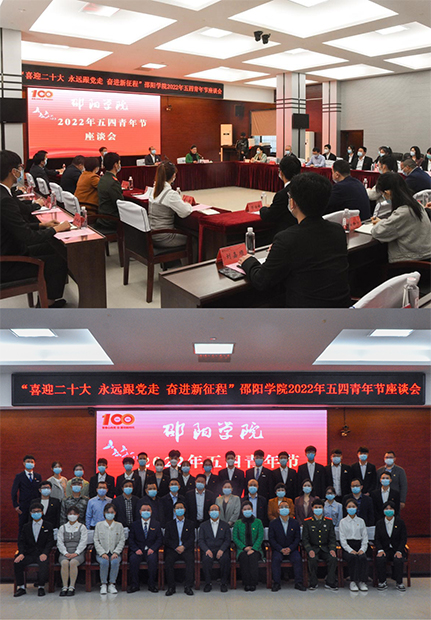 5月3日上午,邵阳学院召开“喜迎二十大 永远跟党走 奋进新征程”五四青年节座谈会,开展思想大交流,庆祝“五四”青年节。学校党委书记彭希林,党委委员、副校长赵敏丽,党委委员、宣传统战部部长王玉林,党政办、组织部、教师工作部、学生工作部、研究生工作部、教务处、招生就业处、团委主要负责人及青年师生代表40余人参加座谈会。会议由赵敏丽主持。