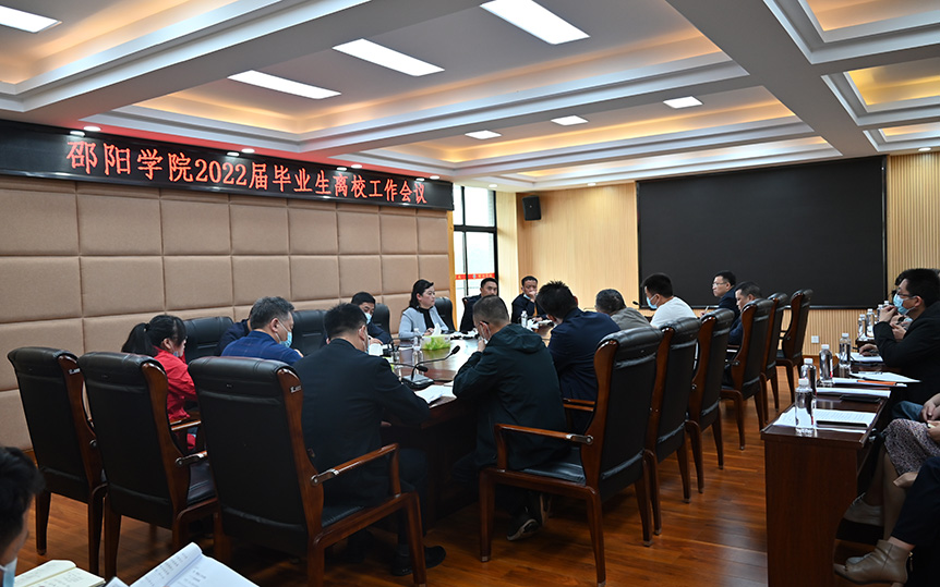 5月12日上午,邵阳学院在七里坪校区一办公楼318会议室召开2022届毕业生教育管理与离校工作会议。党委委员、副校长赵敏丽主持会议并讲话。2022届毕业生教育管理与离校工作领导小组成员单位负责人,各二级学院党总支书记共50余人参加会议。
