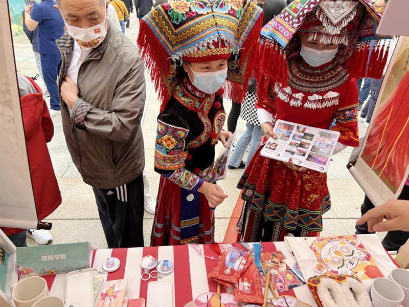 5月19日上午,2022年“爱我湖南‘湘’约邵阳”湖南人游邵阳暨旅游消费季活动在邵阳市城南公园启幕。邵阳学院艺术设计学院应邀在出席启动仪式,并在仪式现场设置展台,展出学生设计的600余件与邵阳旅游有关的文创产品。