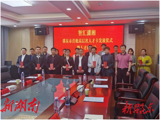 为不断提升人才服务水平,营造尊才爱才良好氛围,提高在邵人才的获得感和荣誉感,5月20 日上午,邵东市举行首批高层次人才“荣誉卡”发放仪式暨人才座谈会,共有41位高层次人才获得殊荣,市委常委、组织部长李仁明出席活动并为18位人才代表授卡。