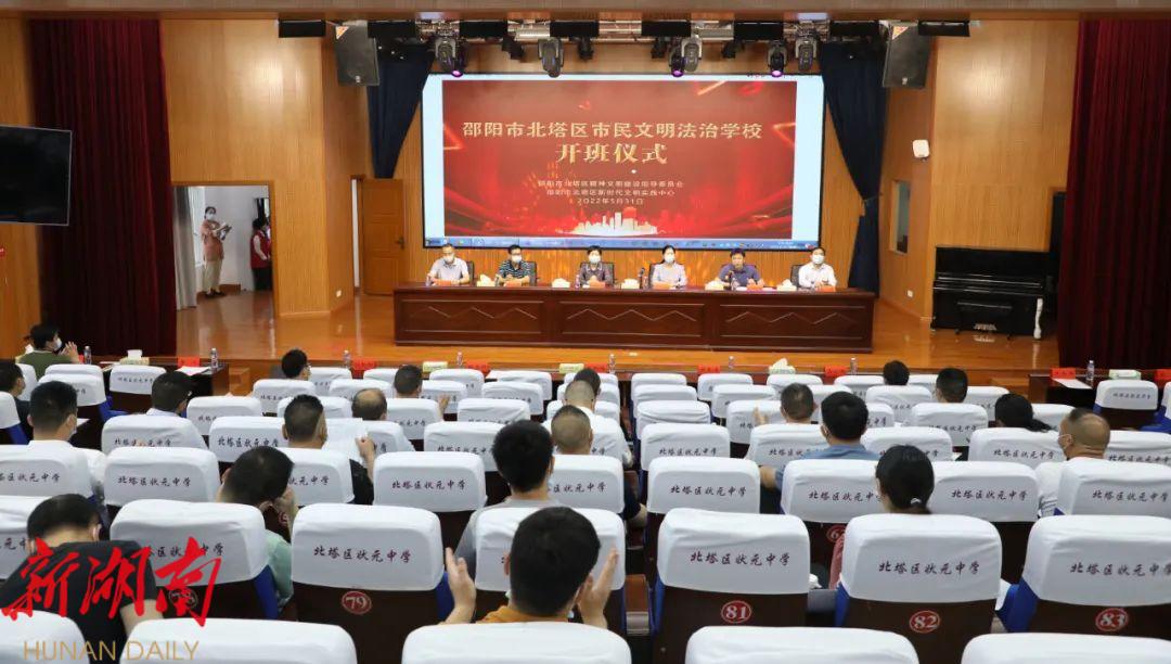 融媒体中心消息5月31日,北塔区市民文明法治学校在状元中学揭牌。市委常委、宣传部长于金旺,市政协副主席、区委书记肖平为区市民文明法治学校揭牌,区委副书记、区长姚文娟在揭牌仪式上致辞,市委宣传部领导张映梅,市创文办宣教组长谢长青,区领导杨起帆、吴小明、唐凌、尹锦明、王永红、朱祥国、岳小波等出席揭牌仪式。