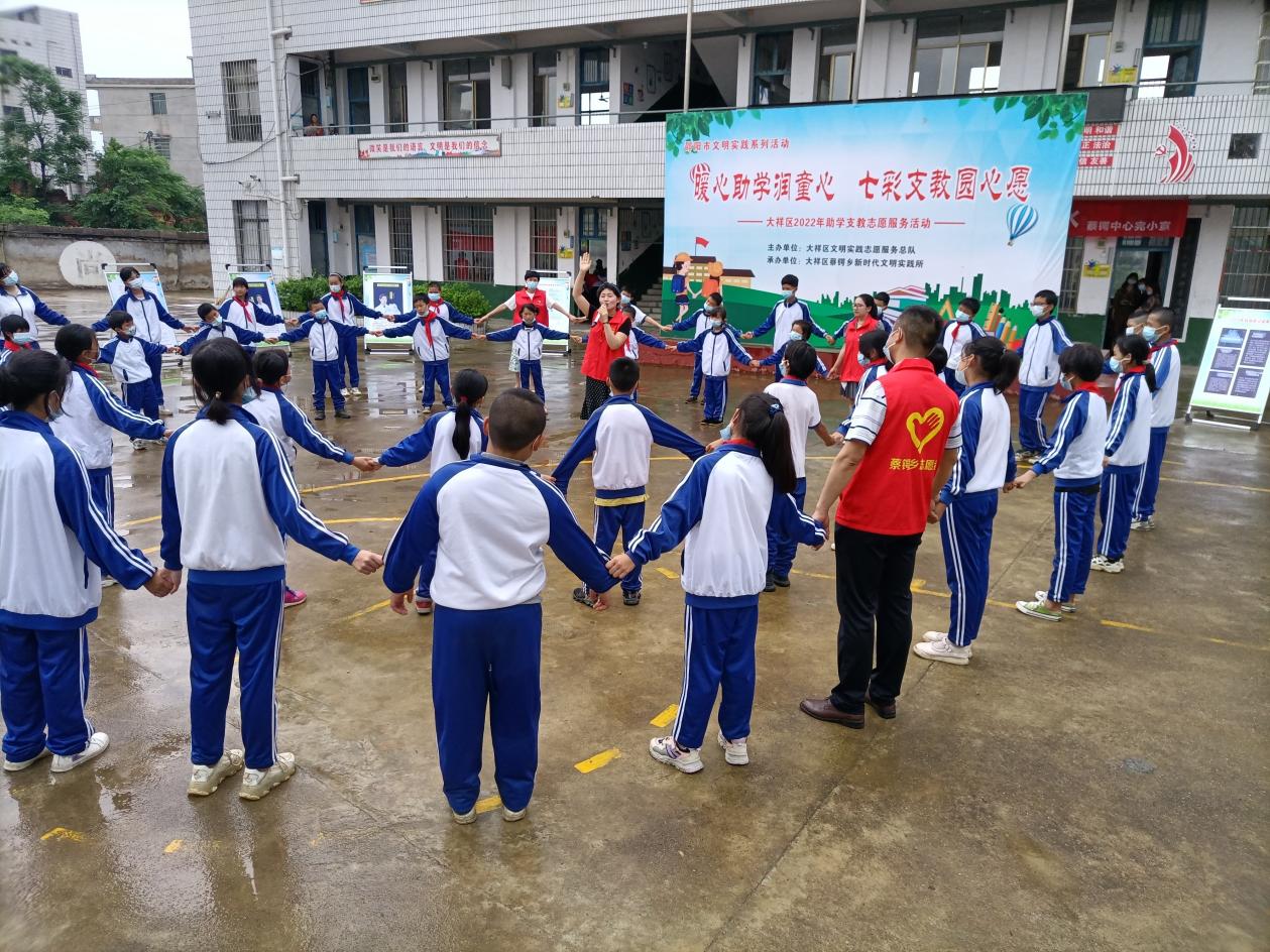 6月2日下午,大祥区委宣传部携手蔡锷乡政府工作人员、教师共同组建一支青年志愿者队伍,到蔡锷乡中心完小共同开展“喜迎二十大,同心护未来”关爱未成年人志愿服务活动。