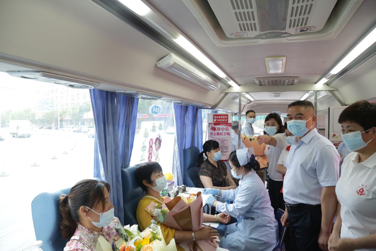 启动仪式结束后,王永红还登上采血车慰问现场无偿献血的志愿者,给他们送去鲜花。邵阳市红十字会也给参与活动的志愿者赠送口罩、急救包等爱心礼包,吸引更多爱心人士加入无偿献血者队伍。