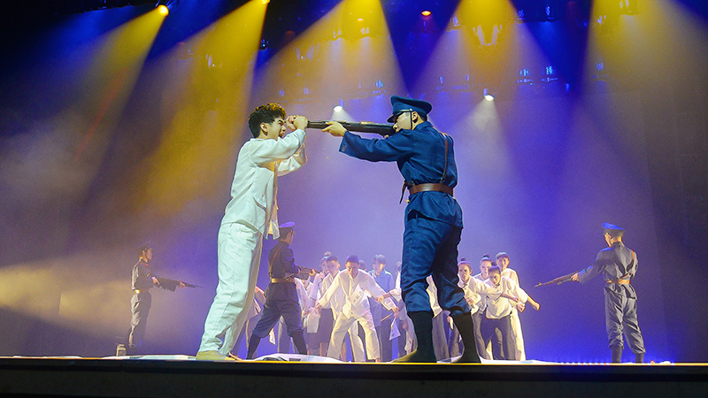当晚,星光剧院座无虚席。19时30分,剧院内灯光渐渐暗下,音乐缓缓响起,演出准时开始。文字交代背景后,演员们轮番登场,配合着灯光与舞美激昂跃动,动作设计契合剧情演出,并渲染出人物情感的气蕴流动,更体现了扎实的舞台基本功,呈现出家与国、民族与个人的羁绊,把现场观众带回到百年前的那段风雨飘摇的峥嵘岁月、那段仁人志士不断涌现的热血年代。