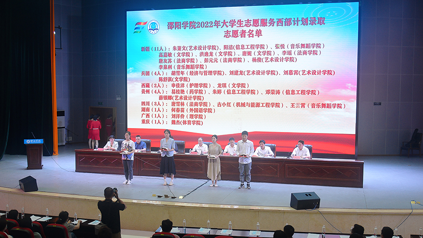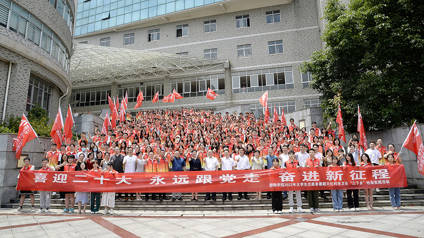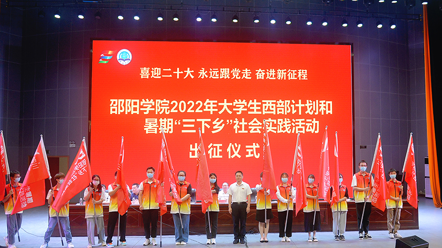 6月15日上午,邵阳学院2022年大学生西部计划和暑期“三下乡”社会实践活动出征仪式在七里坪逸夫图书馆报告厅隆重举行,欢送我校西部计划志愿者和“三下乡”志愿者,为乡村振兴和西部繁荣发展贡献青春力量。