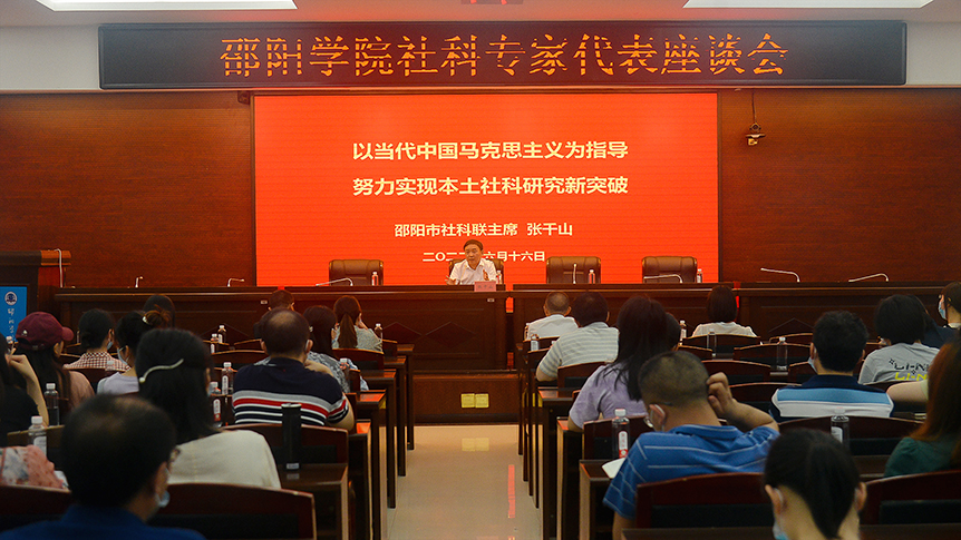 6月16日下午,邵阳学院召开社科专家代表座谈会,邵阳市社科联主席张千山、市社科联副主席海卓、市社科联社科业务部部长肖艳丹莅临我校指导交流,座谈会由科技处处长陈志刚教授主持,科技处全体成员、我校社科专家、青年博士、教师代表共50余人参加座谈。