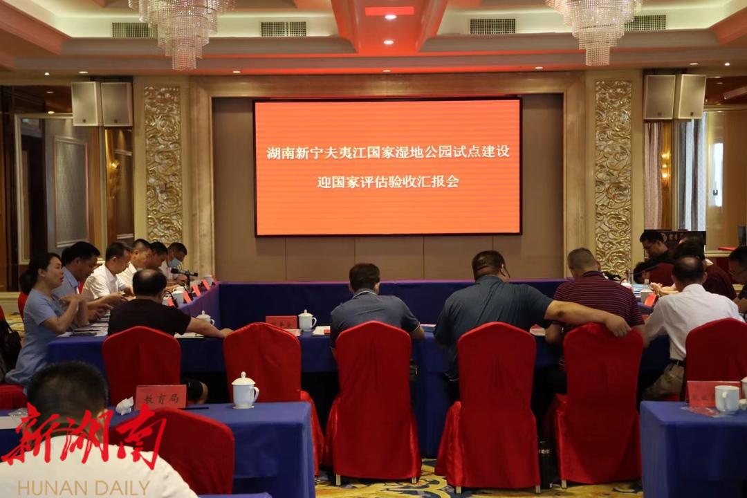 在17日上午召开的验收汇报会上,与会人员观看了湖南新宁夫夷江国家湿地公园试点建设汇报片。县委副书记、统战部部长杨云龙致辞,县委副书记、县长彭洪兵从八个方面介绍我县试点建设相关情况,即在湿地保护方面,做到“强化领导,健全机制”。在基础设施方面,做到“积极建设,逐步完善”。在湿地治理方面,做到“突出重点,综合治理”。在湿地管理方面,做到“机构完善,规范管理”。在湿地监测方面,做到“通力合作,协同监测”。在湿地科研方面,做到“立足基础,积极探索”。在科普宣教方面,做到“形式多样,灵活宣教”。在湿地利用方面,做到“合理利用,共建共赢”。