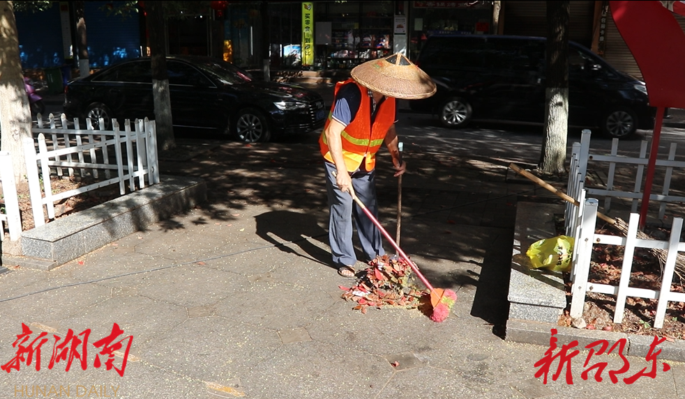 新邵东客户端7月22日讯(记者邓远 实习生 陈可心)今夏入伏以来,邵东市持续出现高温天气,但环卫工人仍然坚守岗位,为城市干净整洁挥洒汗水。