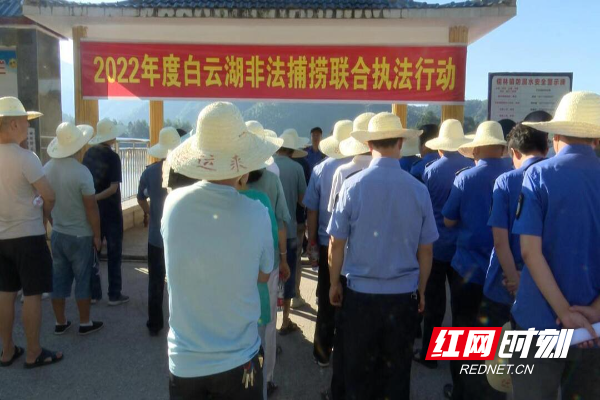 红网时刻新闻7月28日讯(通讯员 易德权)7月26日,湖南南山国家公园管理局联合城步县政府及县森林公安局、县农业农村水利局、县交通运输局执法大队、白毛坪派出所、水陆派出所、儒林镇人民政府、白毛坪镇人民政府等部门单位开展2022年度白云湖非法捕捞联合执法行动。