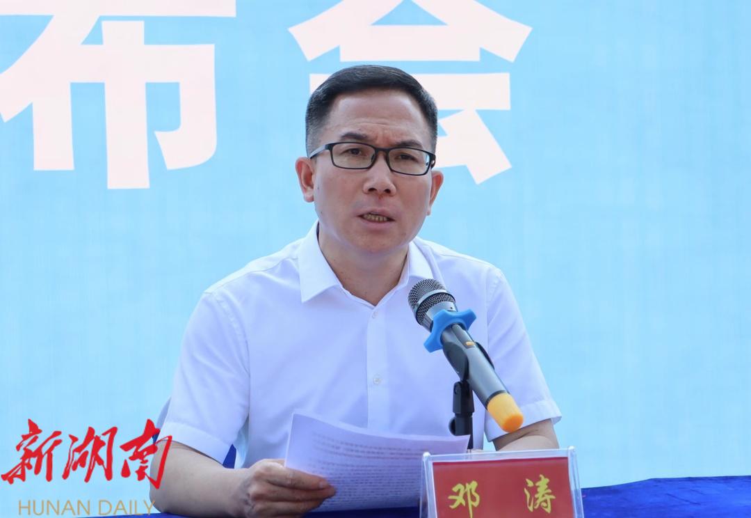 (图为:中共新宁县委书记邓涛答记者问)