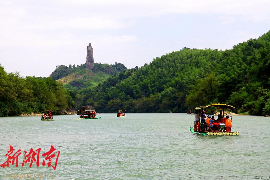 (图为:崀山景区夫夷江漂流将军石景点)
