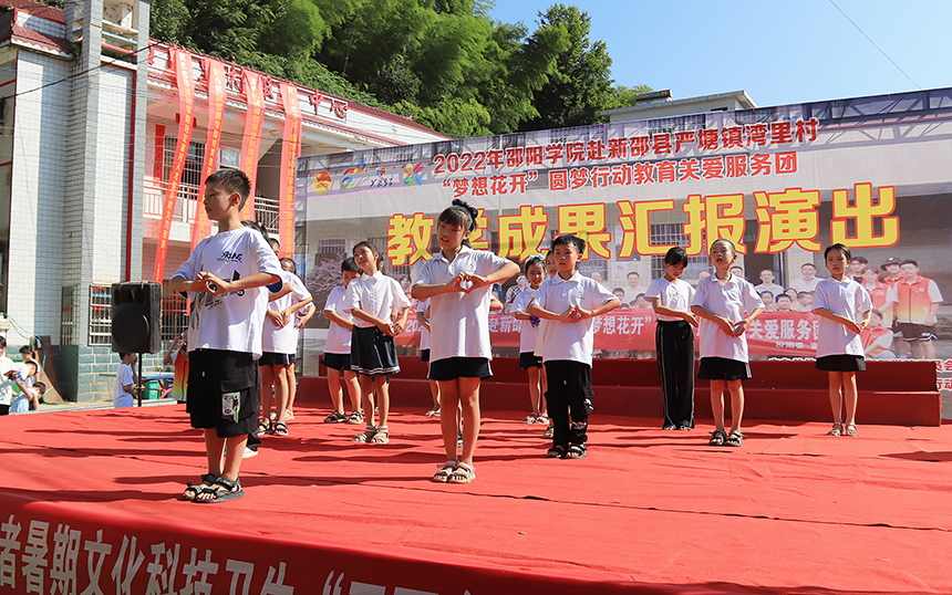 据了解,邵阳学院“梦想花开”圆梦行动志愿服务团是我校入选全省第一届“芙蓉学子 乡村振兴”大型公益项目的5支团队之一,“梦想花开”也是有着十年历史的邵阳学院乃至省内知名的实践育人品牌。此次“梦想花开”圆梦行动服务团的志愿服务分为“梦心护”“梦妙曼”“梦绚烂”“梦巧思”“梦精琢”“梦天籁”共6个板块,分别涵盖课业辅导、心理辅导以及舞蹈、音乐、体育、美术、手工制作等课外素质拓展课程,旨在帮助提高孩子们的积极性、想象力,共有120余名孩子进入“梦想花开”的课堂,度过了愉快的12天。