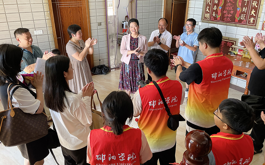 7月12日上午,党委委员、副校长赵敏丽携校团委负责人来到我校新邵县定点帮扶村——严塘镇湾里村,慰问即将结束服务的邵阳学院“梦想花开”圆梦行动志愿服务团,并与驻村工作队、村支两委主要负责人等共同观看了团队成员们与当地村民及小朋友们一起精心排练的教学汇报演出。