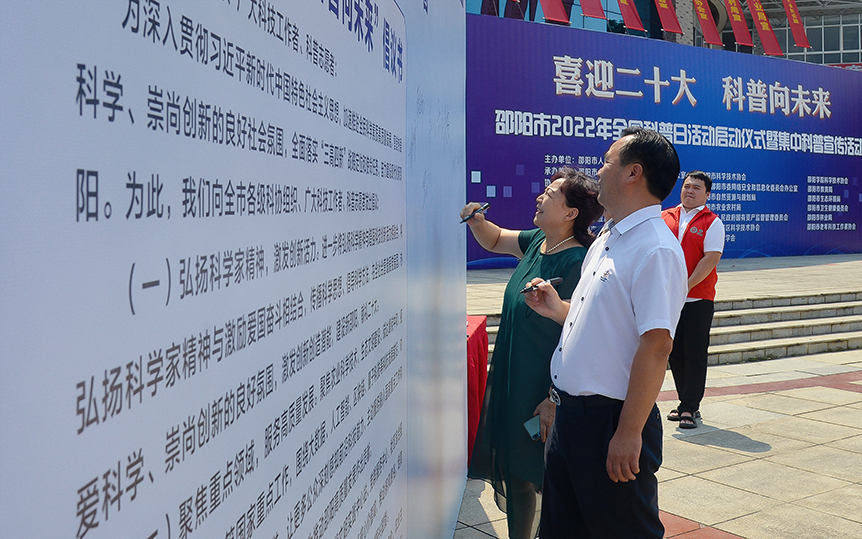 9月14日上午,邵阳市2022年“全国科普日”系列活动启动仪式在我校举行,邵阳市委常委、副市长仇珂静出席并宣布活动全面启动。邵阳学院党委委员、副校长向文江介绍校情及我校科普教育基地的情况,并预祝活动取得圆满成功。
