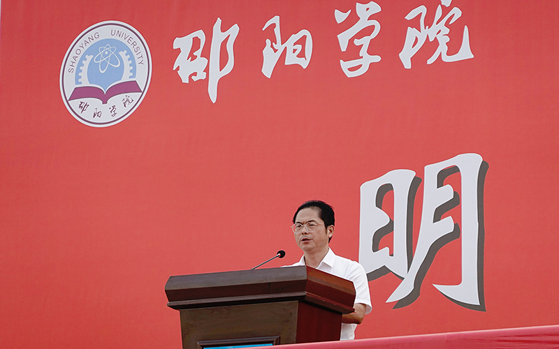 同学们,孟子曰:“天将降大任于斯人也,必先苦其心志,劳其筋骨,饿其体肤,空乏其身,行拂乱其所为,所以动心忍性,曾益其所不能。”生在伟大的时代、长在伟大的中国,新一代邵院学子一定要牢记习近平总书记的殷殷嘱托,树立远大理想,热爱伟大祖国,担当时代责任,勇于砥砺奋斗,练就过硬本领,锤炼品德修为,不辜负党和人民的期望,忠于祖国,忠于人民;立鸿鹄志,做奋斗者;求真学问,练真本领;知行合一,做实干家,努力让自己在邵院的岁月里光彩夺目,不同凡响!借时光之手拥抱梦想,让自己活得无可替代,让青春在不懈奋斗中绽放光彩!