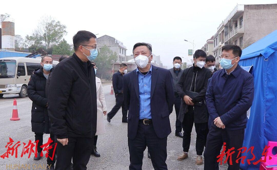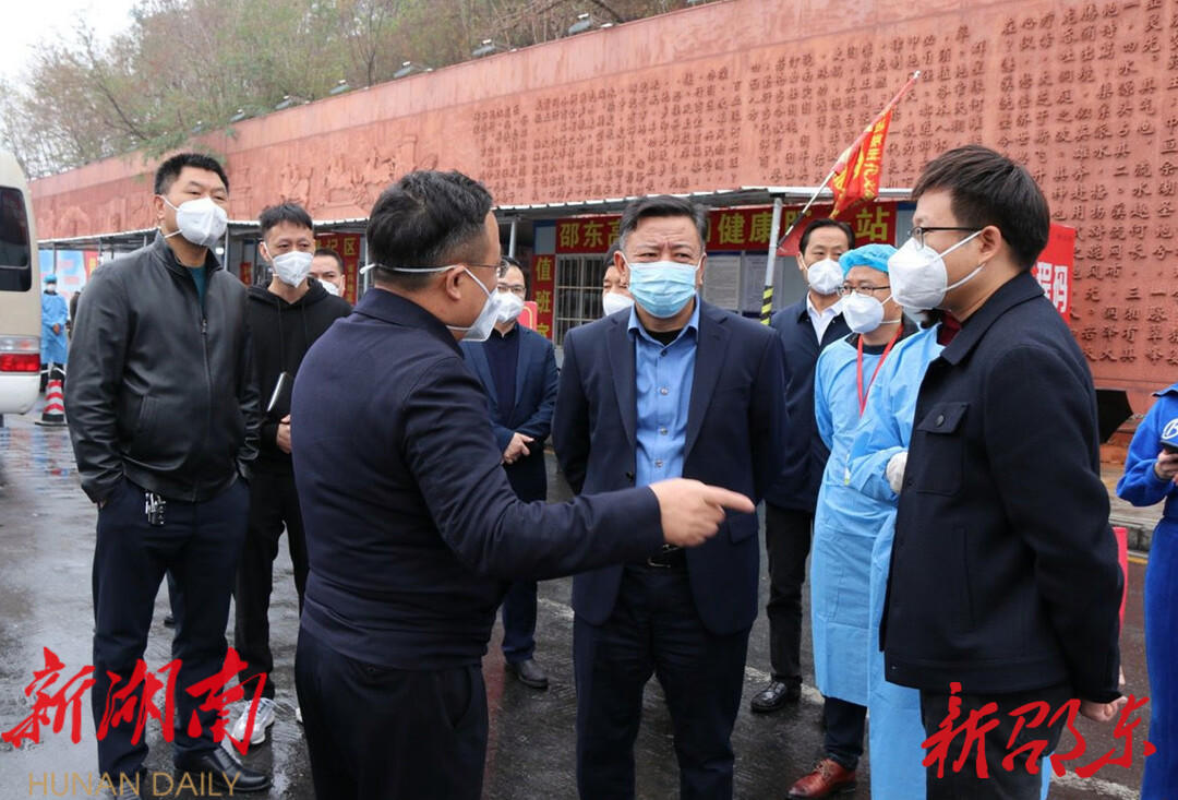 新邵东客户端11月19日讯(记者 曾超众)11月19日上午,邵东市委书记周玉凡在调研疫情防控、道路交通安全等工作时强调,要认清当前疫情防控严峻形势,坚决克服麻痹思想和松懈心理,发扬连续作战作风,合力打好“外防输入、内防反弹”攻坚战,切实筑牢疫情防控坚固屏障。市委常委、常务副市长陈业华,市委常委、市委办主任李佑军,副市长刘书地等参加调研。