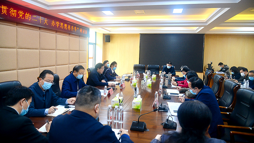 为贯彻落实党的二十大精神,全面提升办学治校的综合能力,进一步明确和理顺学校办学理念,11月24日下午,邵阳学院在七里坪校区一办公楼318会议室举行“学习贯彻党的二十大 办学思想再升华”研讨会。会议由党委书记宁立伟主持,党委副书记、校长张平及全体校领导班子成员,党政办、组织部、宣传统战部、学生工作部、教务处、发展规划处、科技处、马克思主义学院主要负责人参会。
