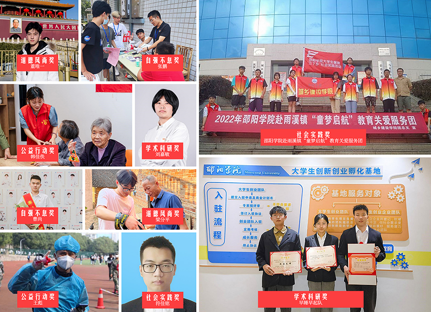 简介:张鹏,男,中共预备党员,现任2020级智造班班长、院体育委员、校展翼传媒中心视频技术部工作。两年来,一直位于专业成绩第一,综合成绩第一,获两次“国家励志奖学金”、2021年度“新时代邵阳向上向善好青年”、“团学先锋”、“甲等奖学金”、两次“三好学生”、“乙等奖学金”、两次“优秀学生干部”、“优秀共青团员”、“社会实践先进个人”、创新类竞赛省级入围3项,湖南省大学生创新创业项目一项,省级及以上奖项12项,校级18项,院级8项,共计38项,引领班级荣获“优秀团支部”,累计志愿者时长200余小时,获“优秀志愿者”,曾受邀至校内宣讲3次,拍摄大型活动多次,家教授课时长约1000多小时,其个人事迹被邵阳共青团等公众号广泛宣传!