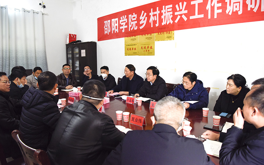 1月5日,校党委书记宁立伟,党委副书记、校长张平,党委副书记陆步诗带领党政办公室、组织部等相关部门负责人,赴邵阳学院乡村振兴工作队驻点村——新邵县严塘镇湾里村,调研指导乡村振兴工作,并慰问驻村工作队员。新邵县委书记陈历贤,县委副书记王振波,县委常委、纪委书记夏业伟携新邵县乡村振兴局、水利局、交通局、农业农村局、严塘镇党委等主要负责人参加调研。