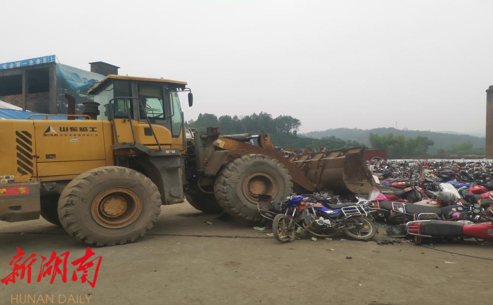 县公安交警大队、财政局、交通运输局、市生态环境局新宁分局、商务局、市场监管等部门和围观群众50余人在现场观摩了车辆拆解报废场景。
