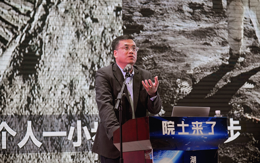 逐梦九天,探索永不止步。王赤院士在讲座中梳理了中国的探月历程。我国在20世纪90年代开启了月球探测论证,确立了“绕,落,回”三步走的基本路线。在中国航天人的不懈奋斗之下,一步一个脚印地圆满完成规划,迈向月球研究前沿,嫦娥四号工程更是当之无愧的中国人的骄傲。由此,中国月球开发“探,登,驻”三步走的宏伟规划也将来到第二步“登”。王赤院士阐述了中国航天工程在下一阶段从探测器、运载火箭到发射场、测控、地面应用等领域所面对的新挑战,嫦娥七号、八号工程的新任务也让观众们无比憧憬。