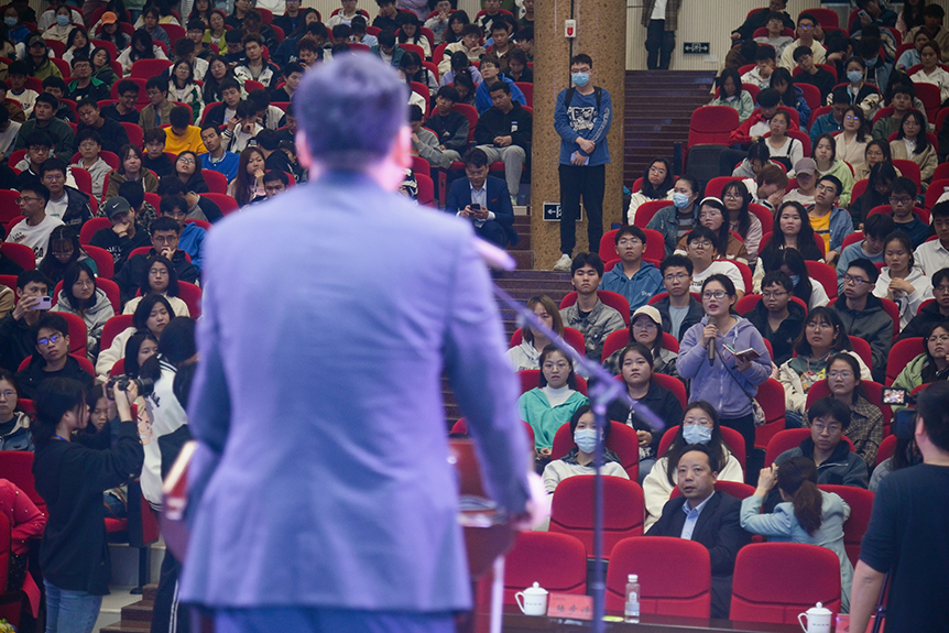 在讲座后,青年学子争先恐后地围着王赤院士请求签名留念,“追星”科学家的现场气氛热烈异常。