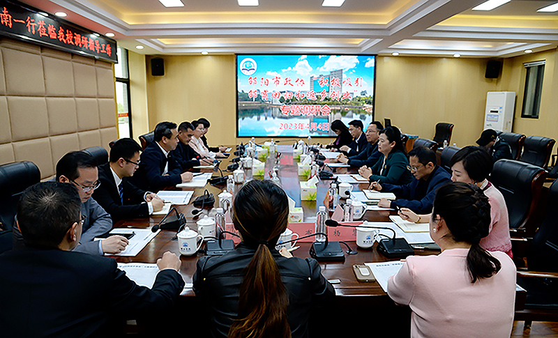 4月5日下午,邵阳市政协副主席蒋志南一行来校就“积极吸引邵商回归和返乡创业”开展专题调研。校党委委员、副校长向文江出席会议,党委委员、副校长赵敏丽主持会议。学校党政办、科技处、招生就业与创新创业指导处、国内与校友工作办公室等部门负责人参加会议。