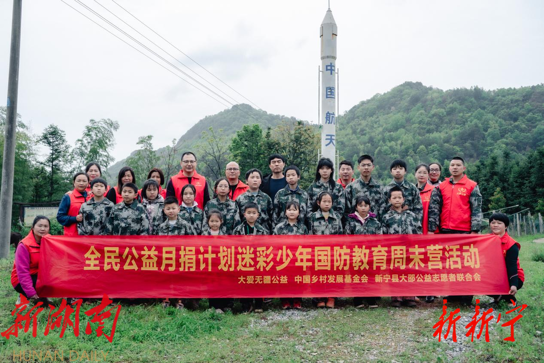 4月8日,新宁大邵公益“全民公益月捐计划&迷彩少年国防教育周末营”活动在位于回龙寺镇的湖南省全民国防教育裕锋基地圆满完成!16位来自我县金石、黄龙、清江桥、回龙、巡田、丰田、马头桥的事实孤儿,通过参观飞机、坦克、火箭和讲红色故事接受爱国主义教育,通过丛林穿越和急救知识讲解等环节而体会和领悟成长的真谛,学会了“安全、勇敢、独立、感恩、担当”!