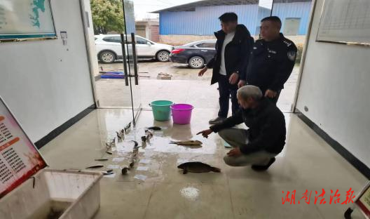 湖南法治报讯(通讯员 蒋新东 徐海宁)2023年4月6日凌晨,新宁县森林公安民警联合县农业农村局执法人员、县反电鱼者协会成员共10余人,在扶夷江金石镇宛旦平村河段将在正使用超声波电鱼的罗某某当场抓获,现场收缴超声波电鱼设备一套、塑料船一艘、渔获物若干。