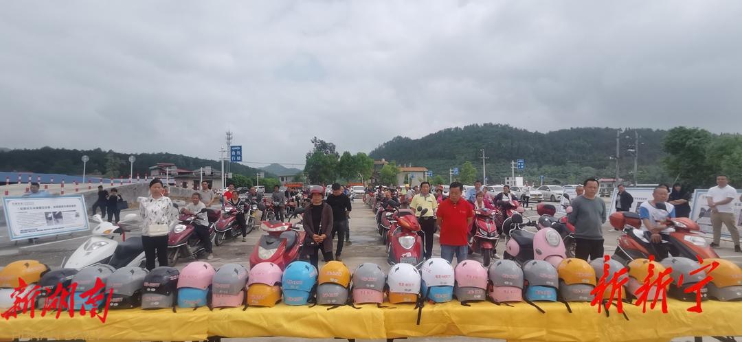 4月20日,在新宁县万塘乡开展的交警道路交通安全综合整治“春季攻势”现场,邵阳市人大代表、新宁工商业联合会副会长刘丹梅现场捐赠安全头盔500只。