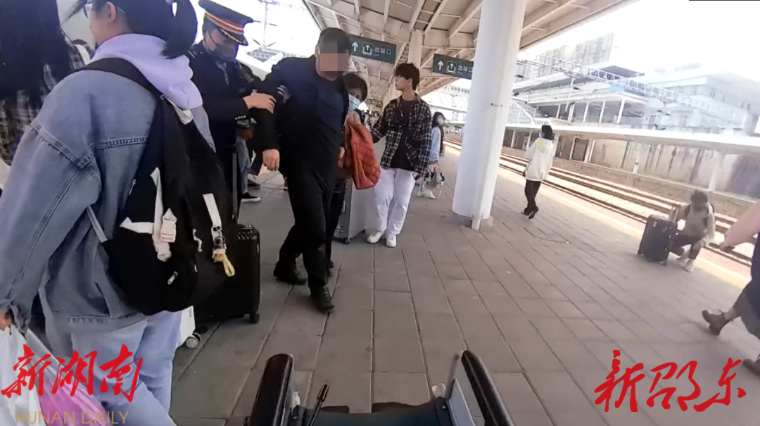 “12:21分,列车到站后,我看见旅客身体比较虚弱,需要搀扶,裤子上也全是血。”邵东站客运值班员熊芳仙介绍。