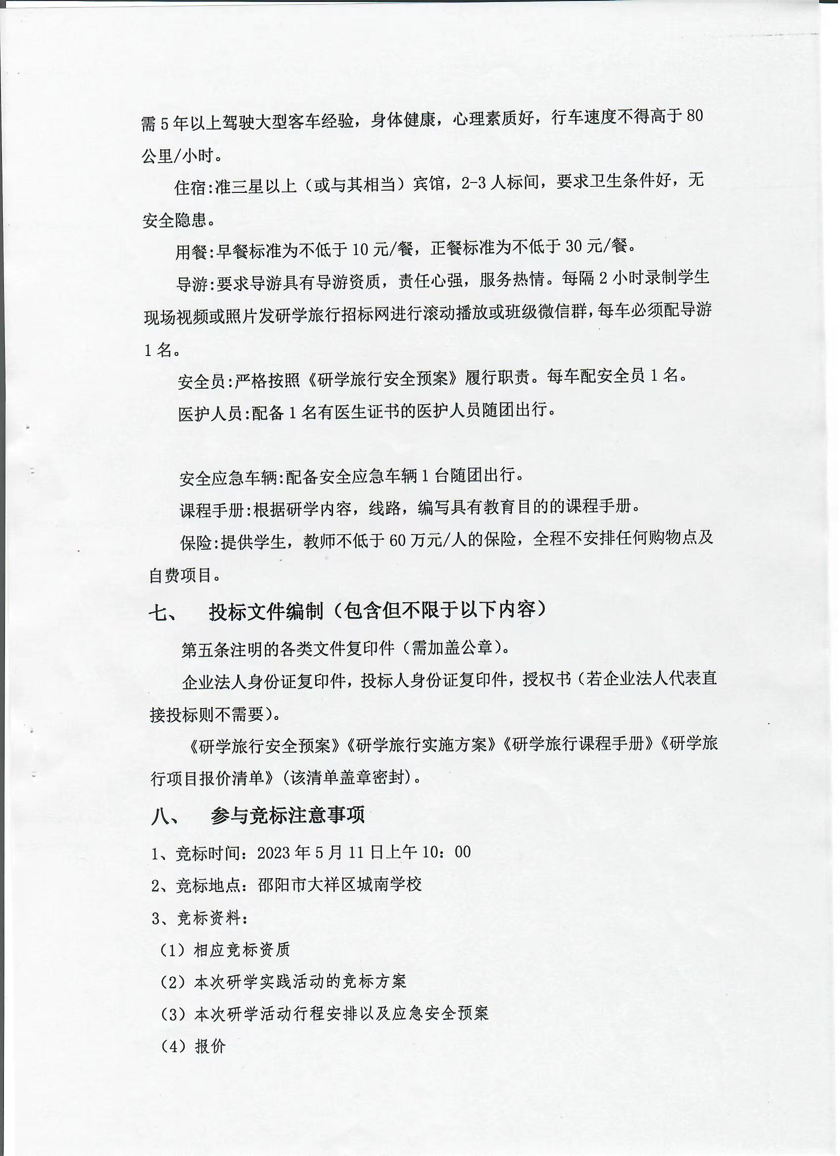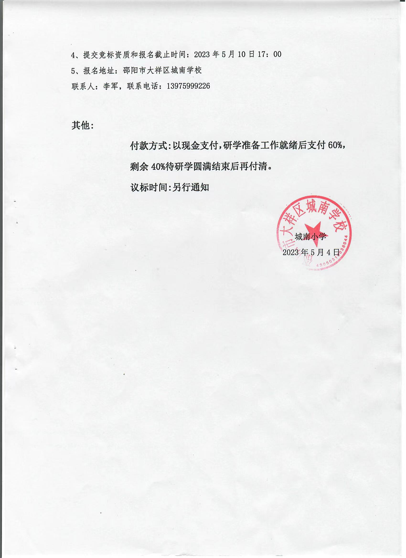 大祥区城南学校2023年春季研学实践活动招标公告(一、二年级)