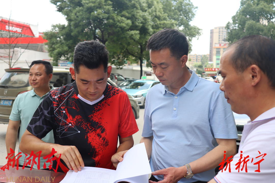 图为市人大常委会副主任毛学雄(右二)在新宁县城区居民自建房除险加固点进行检查。