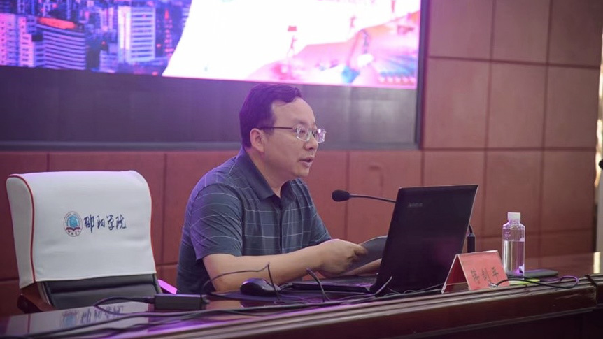 6月16日下午,校党委委员、副校长蒋剑平教授在七里坪校区润德楼报告厅以《走好中国式现代化之路》为题讲授主题教育专题党课。设计艺术学院院长汪碧波主持,护理学院和设计艺术学院班子成员、师生党员、入党积极分子及部分22级学生参加。