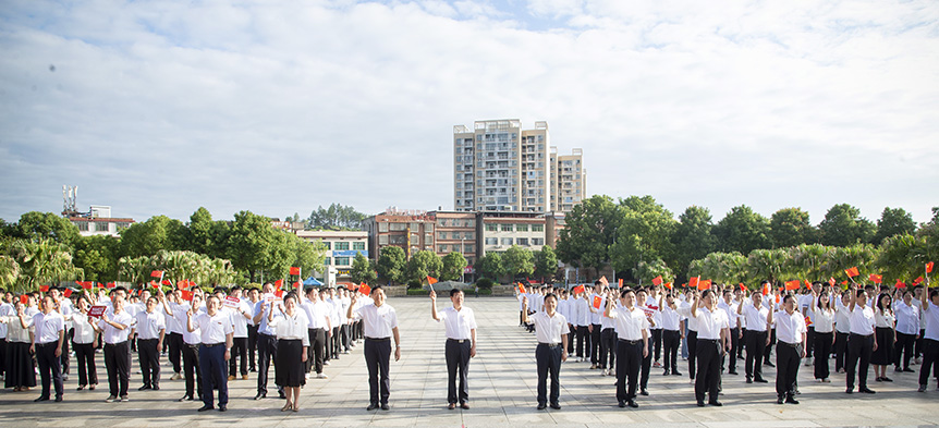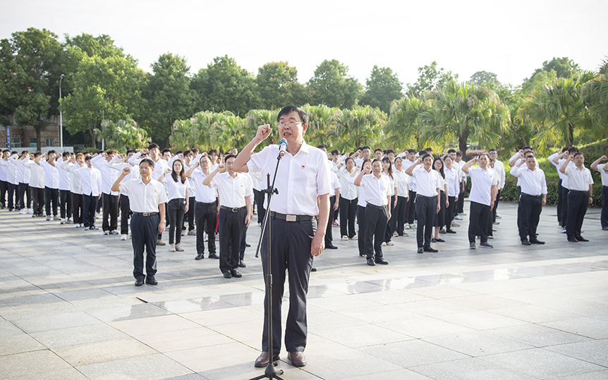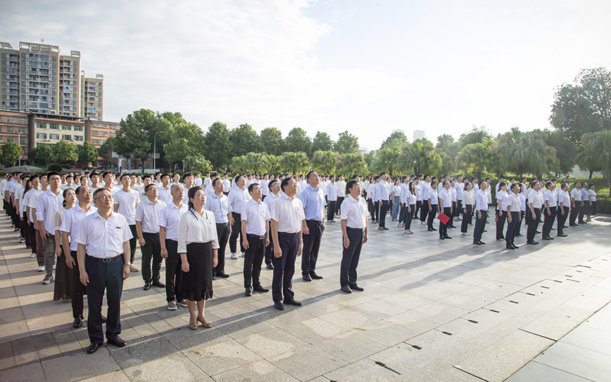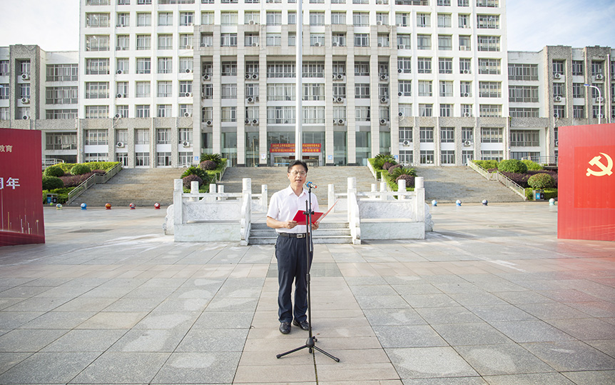 在中国共产党成立102周年之际,6月27日上午7时,邵阳学院在明德楼广场举行升旗仪式,全体在校党政班子成员、党务部门负责人、校团委、学院教师代表、国旗班成员、学生党员代表共计两百余人参加升旗仪式,党委书记宁立伟领誓入党誓词并发表讲话,党委副书记、校长张平主持升旗仪式。