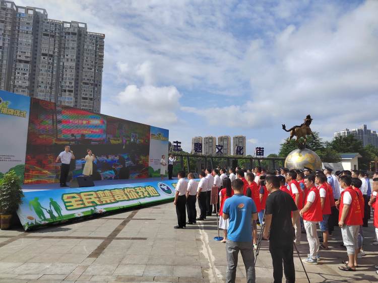 禁毒主题文化街设有禁毒历史、国家领导人禁毒语录、毒品识别、毒品危害、毒品防范和禁毒成果等板块,同时有禁毒形象大使袁树雄现场演唱改编版《早安英雄》,禁毒志愿者们向群众发放禁毒宣传材料,现场热闹非凡,禁毒氛围浓厚。