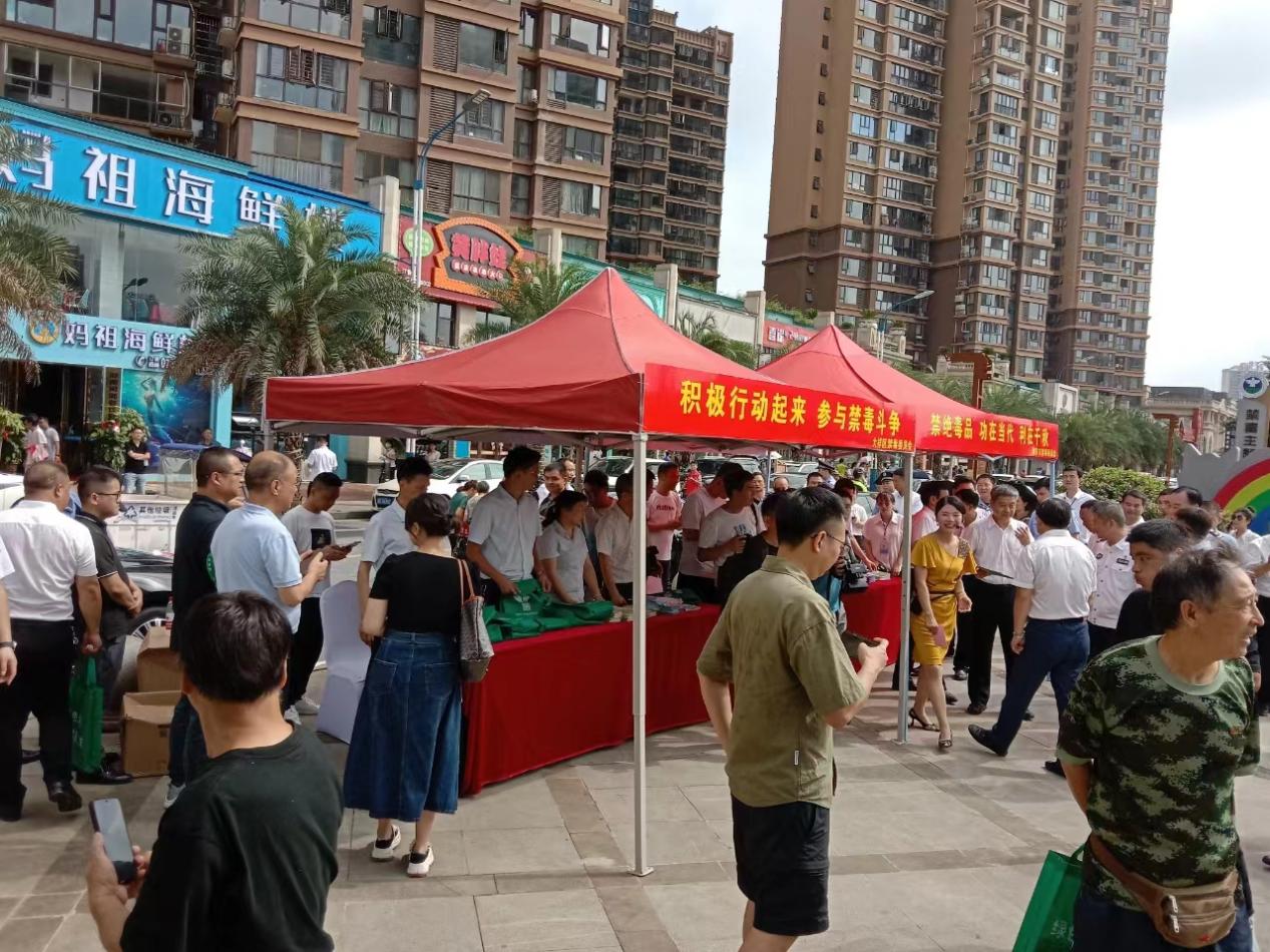 大祥融媒讯:(通讯员:曹思妍 )6月26日是第36个国际禁毒日,当天上午,邵阳市禁毒委在大祥区邵水西路东方威尼斯广场举行“邵阳市禁毒主题文化街”揭牌仪式,邵阳市委书记严华、市长华学健现场为“禁毒文化主题街”揭牌,邵阳市各机关单位参与活动。同时,翠园街道积极配合市禁毒委调度,在双拥路和宝庆路交接点设置一个宣传点位。