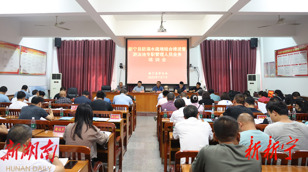 7月7日,新宁县防溺水疏堵结合推进暨游泳池专职管理人员业务培训会在县教育局举办,县学安委办、防溺水办、应急局、文旅广体局、疾控中心、教育局等相关单位负责人以及各乡镇、各中心学校、游泳池负责人共80多人参加。