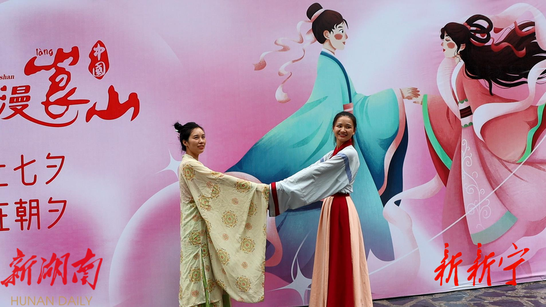 8月22日上午,崀山景区“浪漫七夕,崀山宠你”游客专属体验活动吸引了一批特殊的游客,她们身着汉服、清秀靓丽,一边在景点摆POSE打卡拍照、有说有笑,一边看风景、听历史、访人文,闲适怡然、浪漫美好。