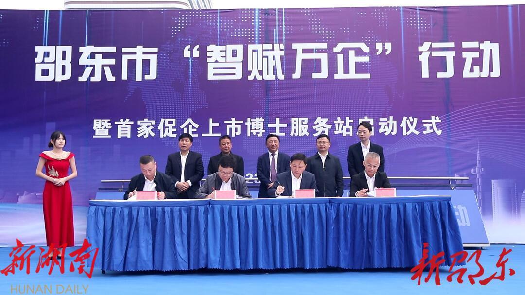 活动现场,与会领导共同为邵阳市促企上市博士服务站启动揭牌。促企上市博士服务站的设立,将进一步发挥政企沟通的桥梁作用,协助落实企业上市绿色通道、精准解决企业上市相关困难、助力企业扫清上市障碍。