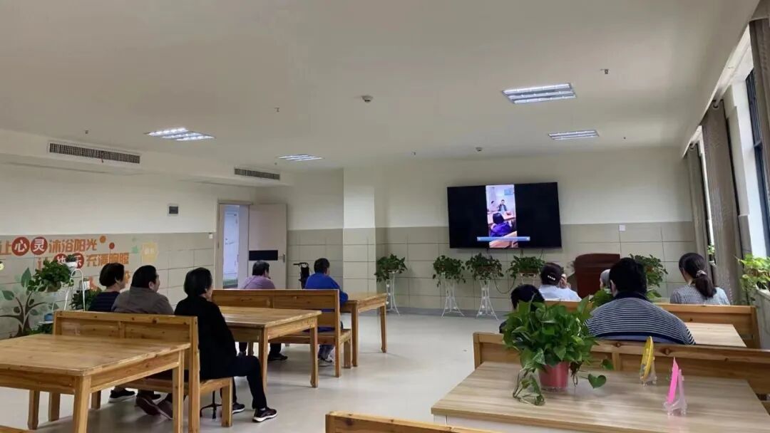 在医院的健康宣教室内,患者家属们齐聚一堂,认真地观看了安宁疗护宣传短片《让生命有光,有温暖》。
